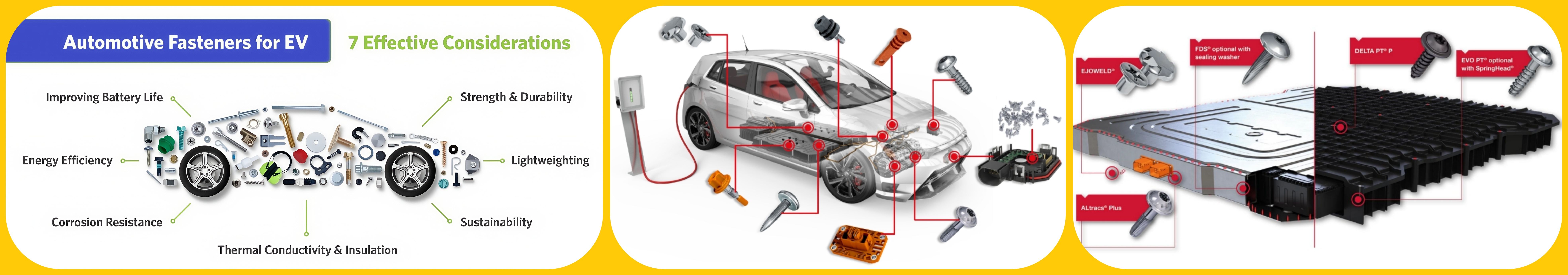 Fixation de fixation de la batterie: En tant que composant énergétique central d'un EV, la batterie doit être fixée en toute sécurité et de manière fiable pour résister aux vibrations, aux impacts et aux collisions potentielles pendant le fonctionnement du véhicule. Les attaches doivent posséder une résistance extrêmement élevée, une excellente résistance à la fatigue et une protection supérieure de corrosion pour assurer la sécurité de la batterie dans toutes les conditions de fonctionnement.