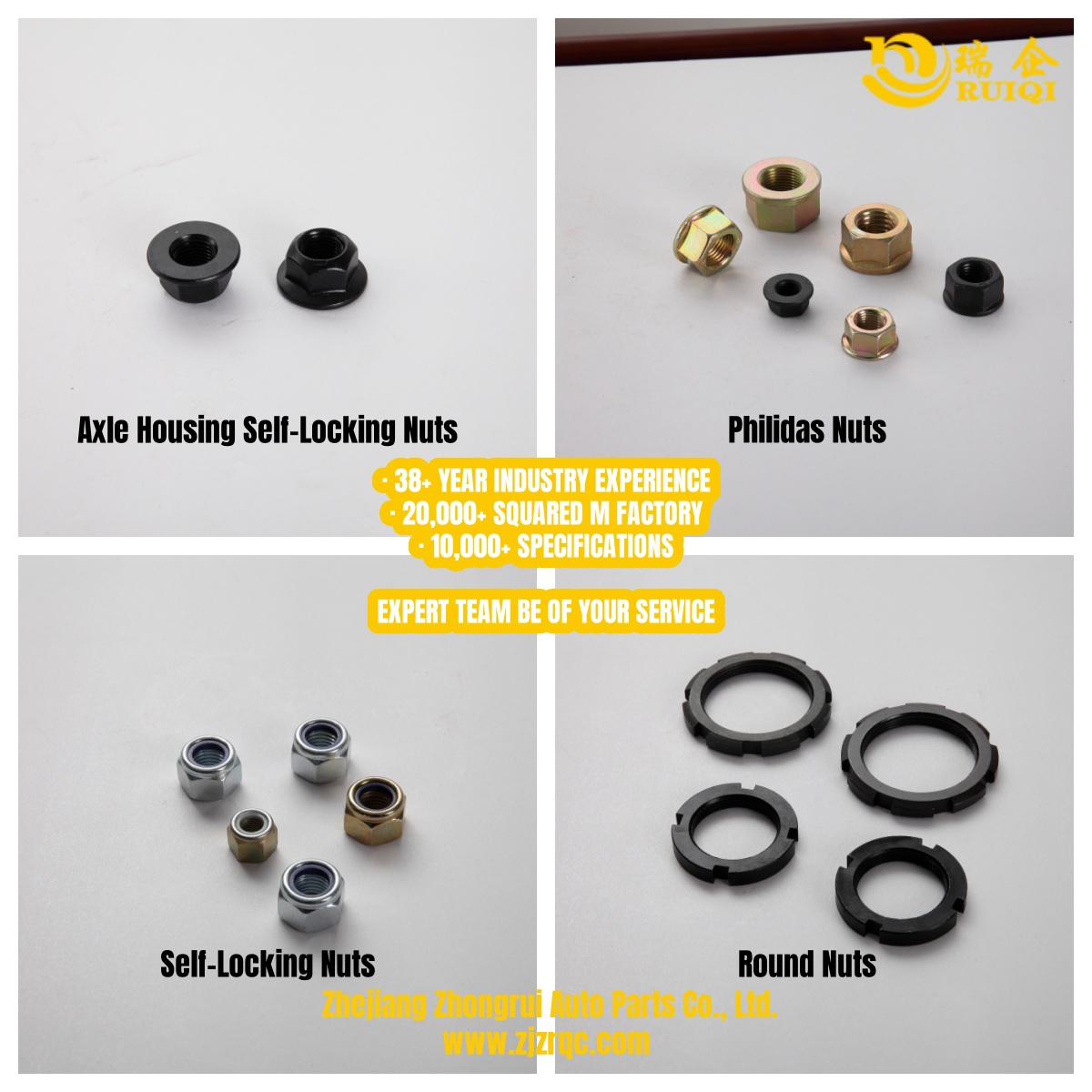 Zhejiang Zhongrui Auto Parts, avec plus de 38 ans d'expertise dans l'industrie, est fier de présenter notre gamme spécialisée de noix haute performance. Notre vaste usine de 20 000 mètres carrés et plus de 10 000 spécifications garantissant que nous fournissons les solutions de fixation parfaites pour vos applications critiques.