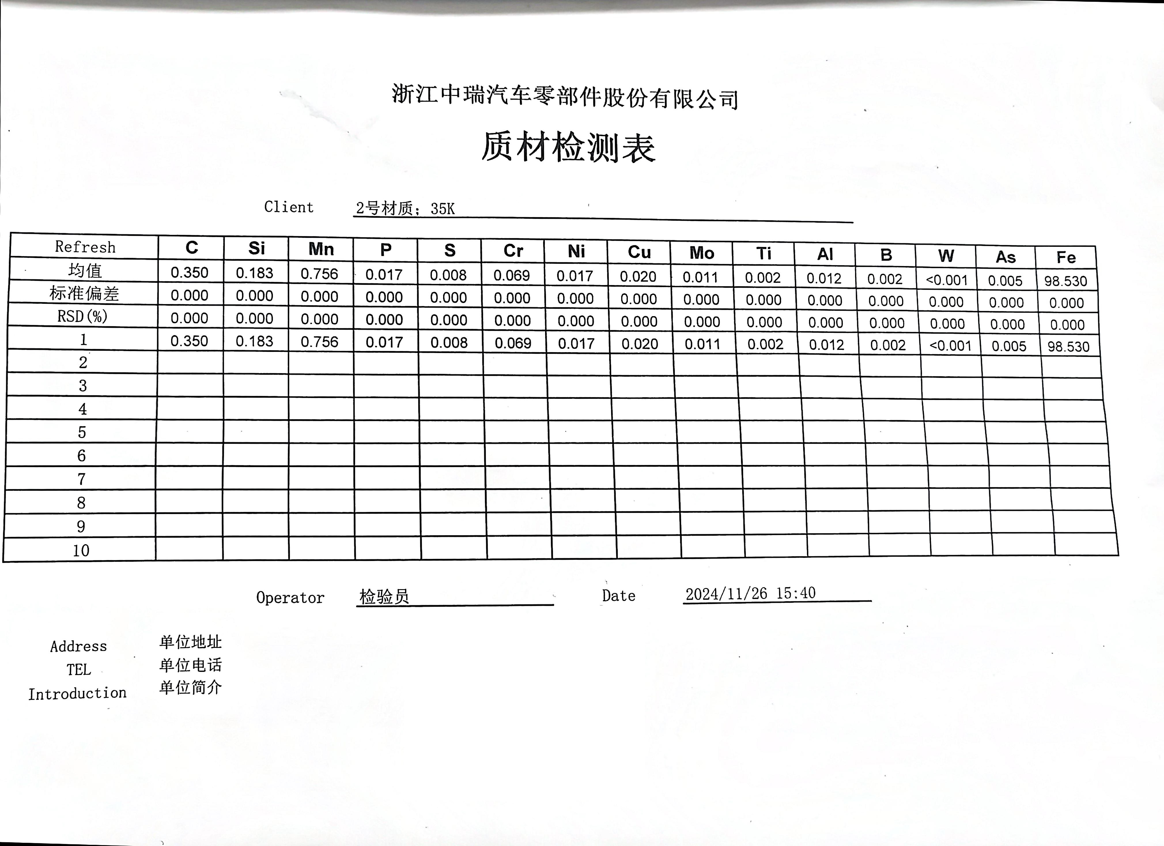 Pour démontrer cet engagement, nous conduisons rigoureux tests de matériel En tant que partie fondamentale de notre Contrôle de qualité processus. Prenez, par exemple, notre processus de vérification pour Matériel 35k , une spécification commune utilisée pour de nombreuses attaches automobiles. Notre détaillé Rapport de test de matériel Fournit un instantané clair de notre analyse de précision.